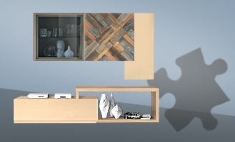 Muchos módulos para construir los muebles adecuados a tu necesidades.Si necesitas una librería, eliges módulos con compartimientos abiertos, si quieres una vitrina, puedes optar por módulos con puertas de vidrio, si lo que buscas es un zapatero o un aparador, puedes usar los módulos con puertas/cajones de madera.