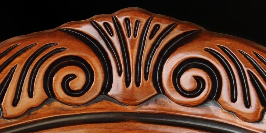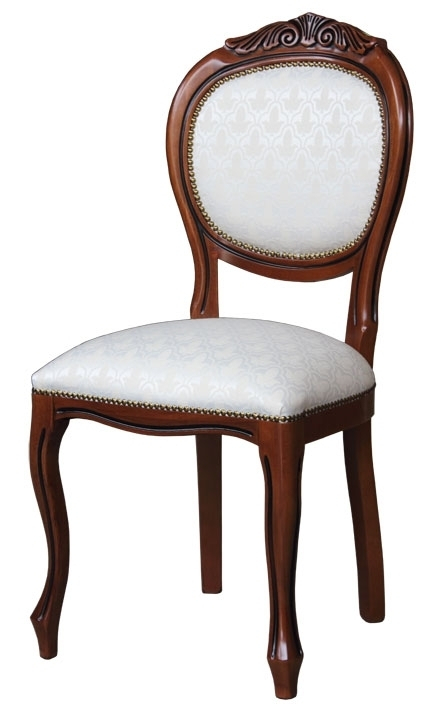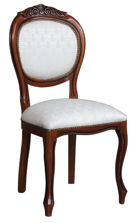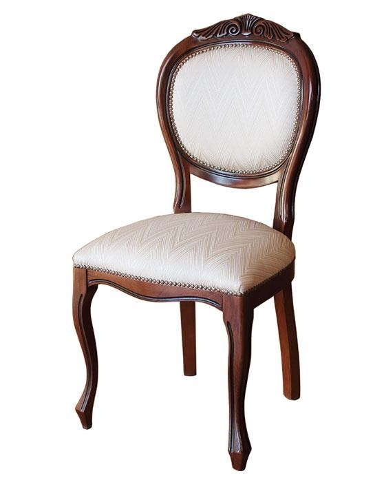 Hermosa y robusta silla cabecera de estilo clásico, enriquecida por un bonito tallado en la parte superior del respaldo.