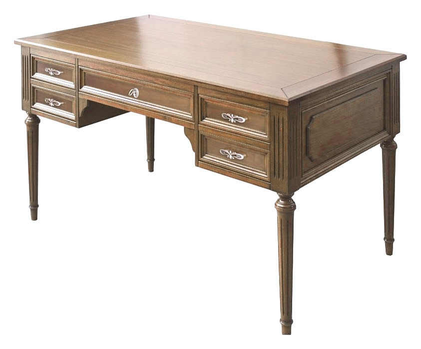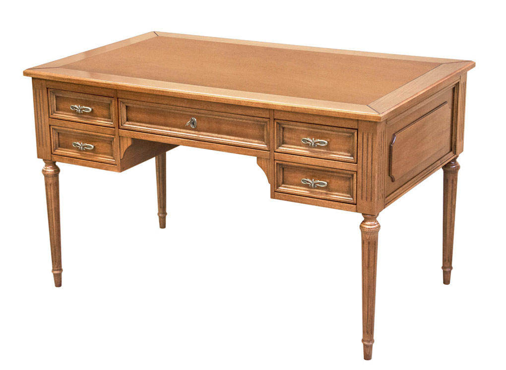 La estructura sólida e imponente asociada con el procesamiento particular de la madera, le da importancia al escritorio y al mismo tiempo una elegancia refinada. Estas características, sin embargo, ocultan un aspecto fundamental de la funcionalidad del escritorio, dado por los 5 cajones grandes.