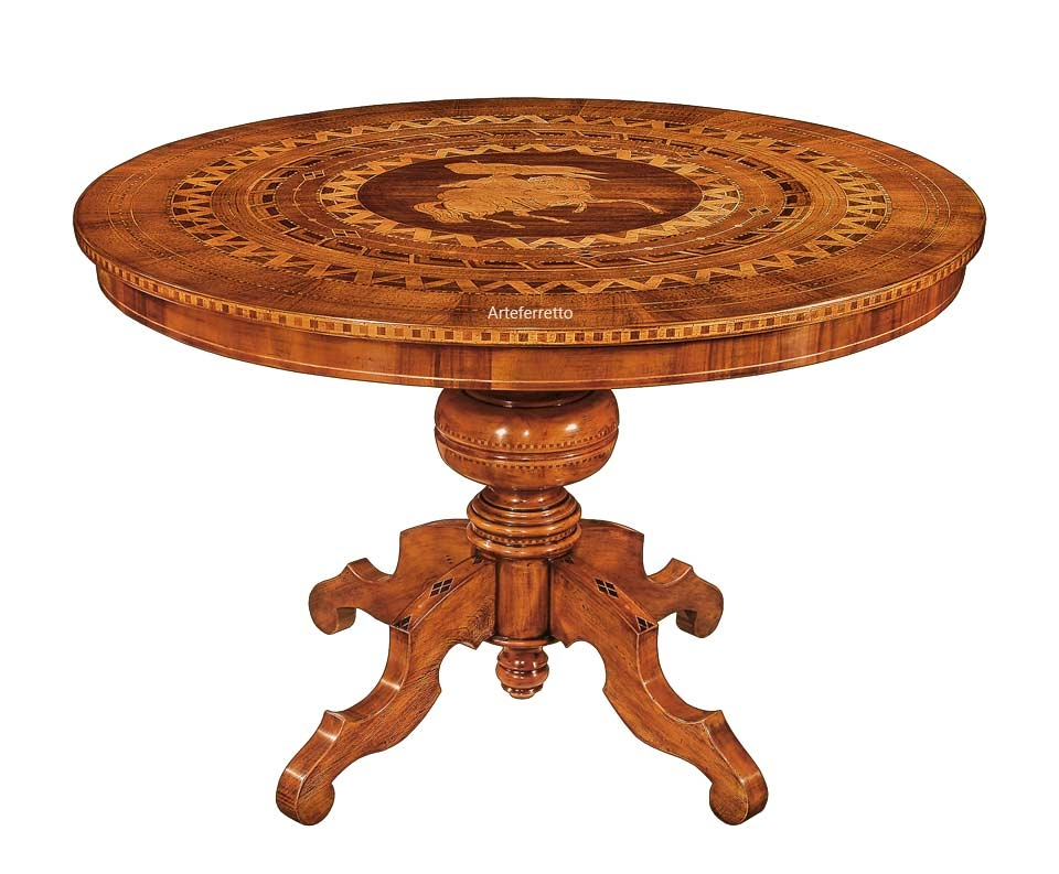 La pata central, en madera maciza, se caracteriza por hermosos y delicados trabajos que aumentan la calidad de esta mesa de comedor.