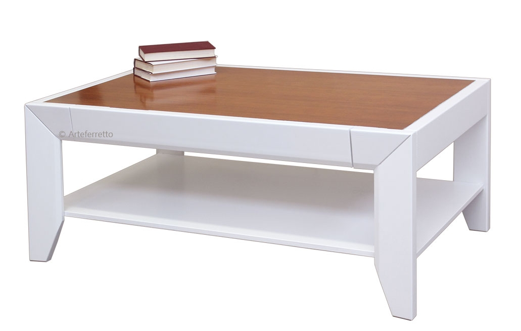 Tavolino da salotto dallo stile originale. Di generose dimensioni, offre una grande comodità grazie anche ad un capiente cassetto.