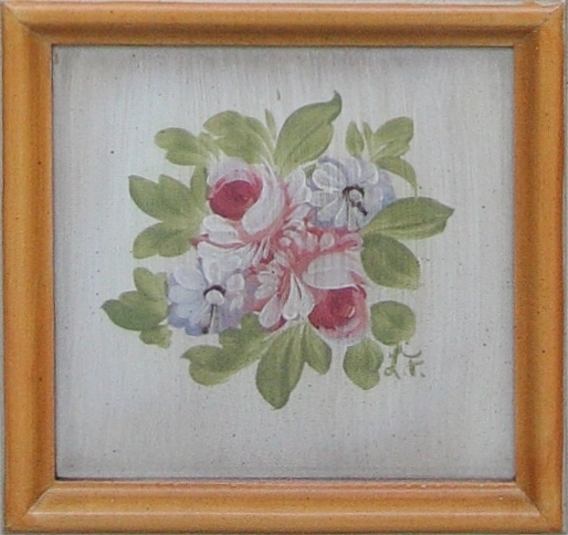 La laca brillante (con un ligero efecto antiguo) deja espacio, en la parte central de la puerta, a una delicada decoración floral pintada a mano.