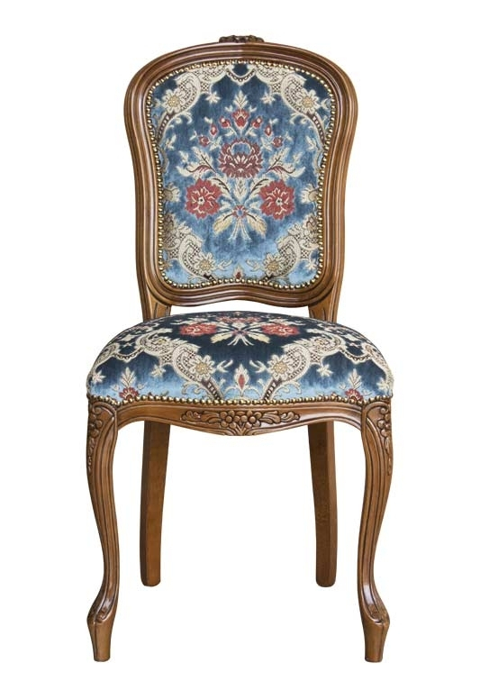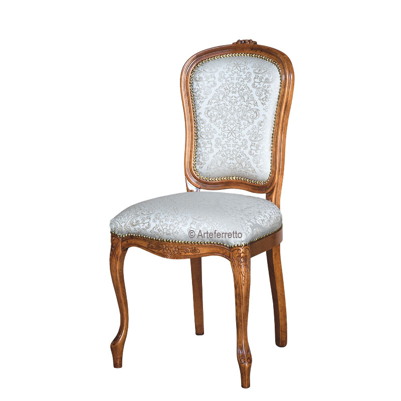Nella parte più alta dello schienale, le due rose intagliate completano in bellezza la linea di questa bellissima sedia.