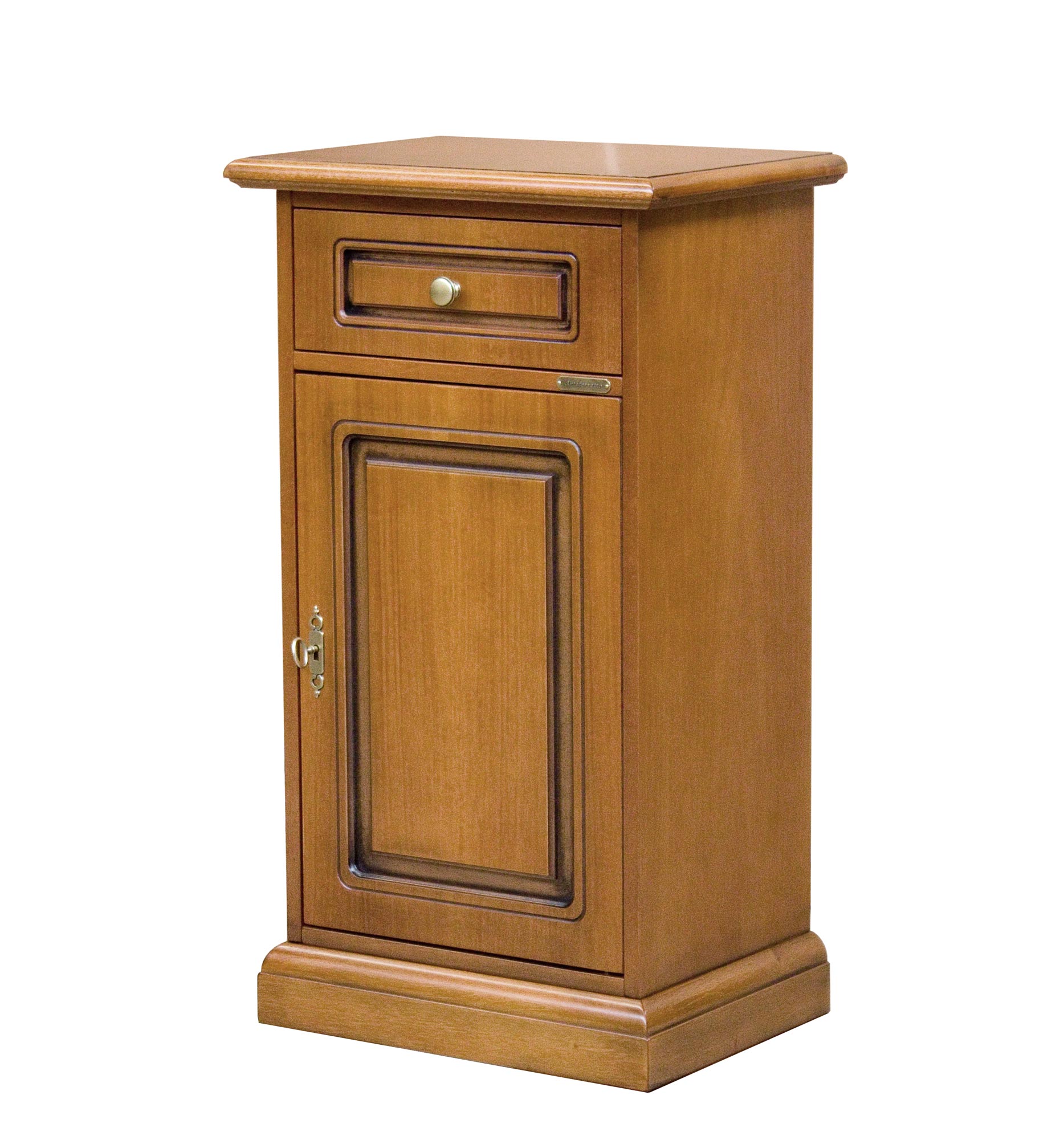 Un práctico cajón convierte este pequeño mueble en una solución completa y versátil que puede colocarse en cualquier rincón o contexto del hogar.