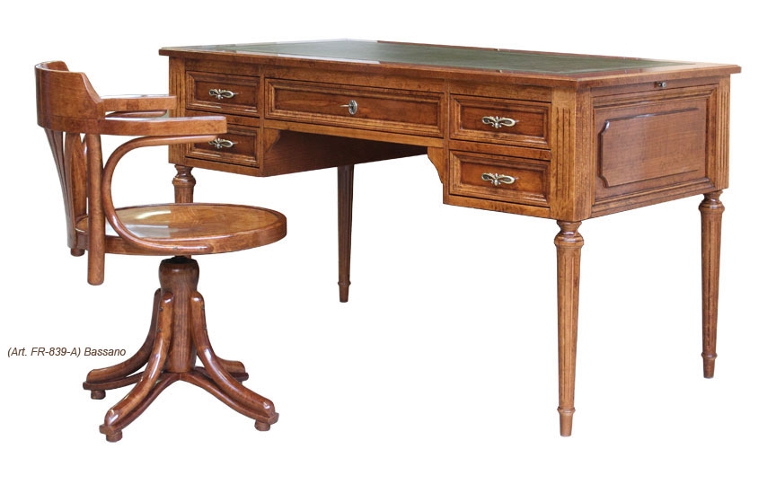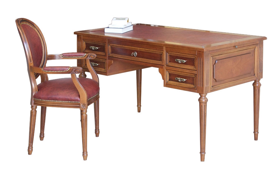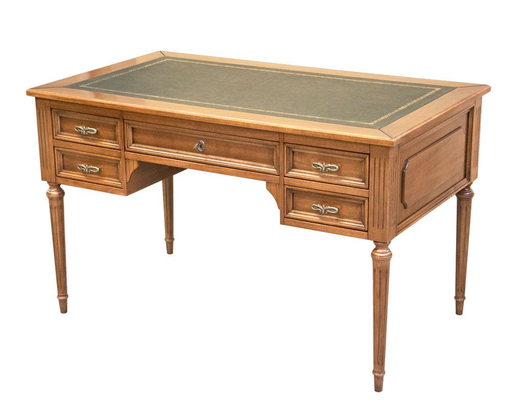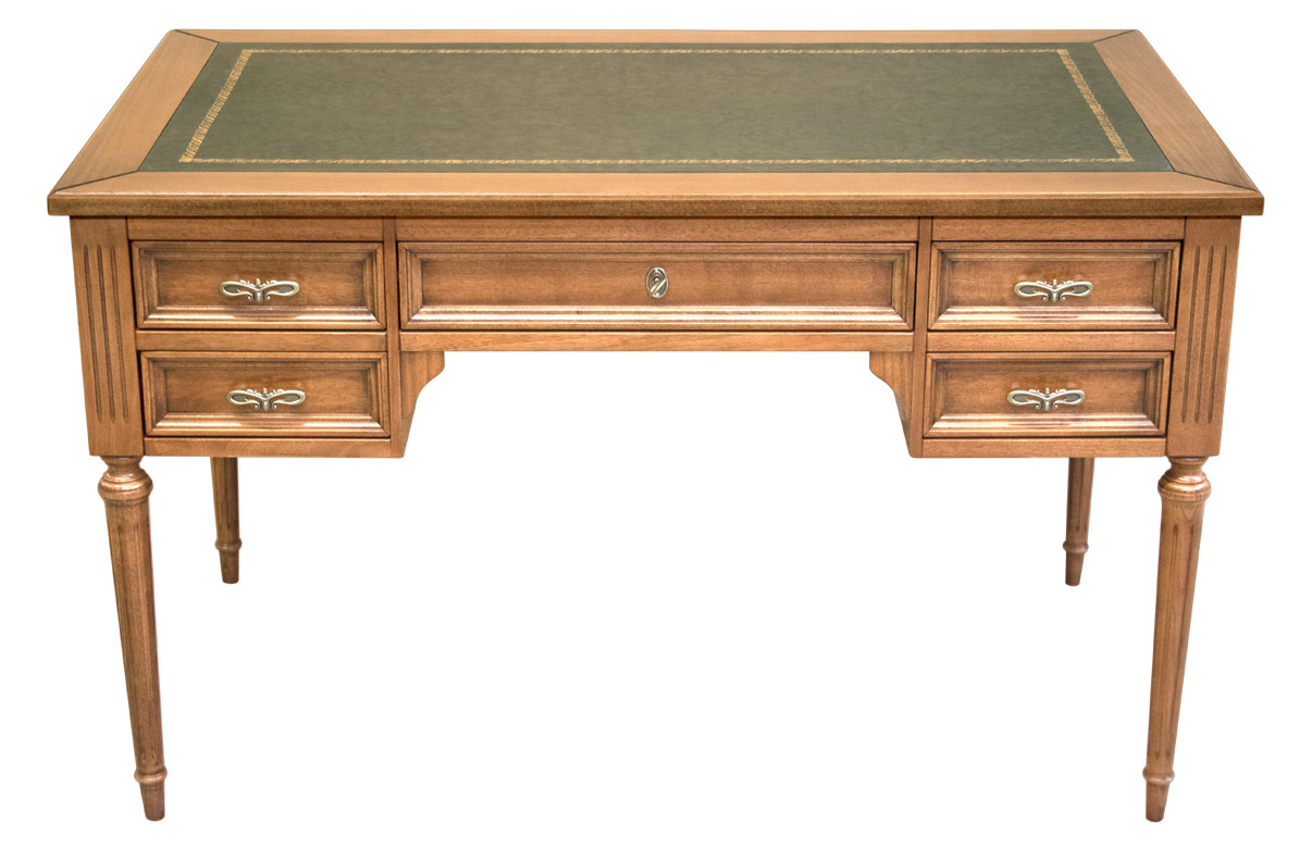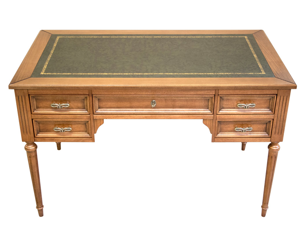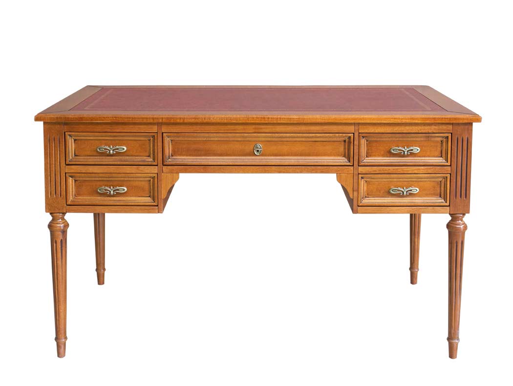 Escritorio Luis XVI en madera tablero en piel y cinco cajones