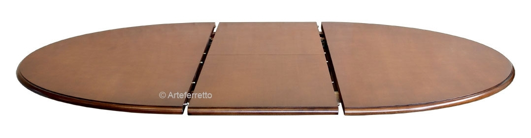 La pata central, en madera maciza, se caracteriza por hermosos y delicados trabajos que aumentan la calidad de esta mesa de comedor.