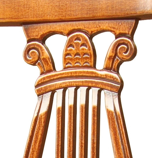 Con el respaldo tallado en forma de lira esta silla se enriquece con elegancia sin sacrificar nada a la funcionalidad y la comodidad de sentarse.