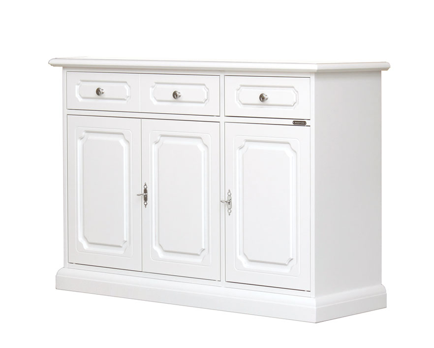 Aparador en madera blanco 3 puertas 2 cajones estilo clásico