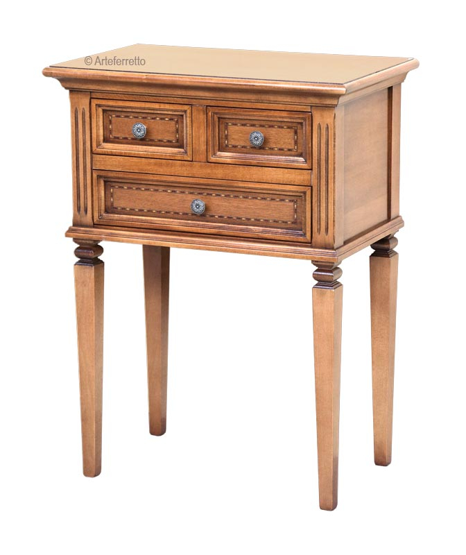 Un comodo cassetto rende questo piccolo mobile un elemento d'arredo completo e versatile, posizionabile in ogni angolo o contesto della casa.
