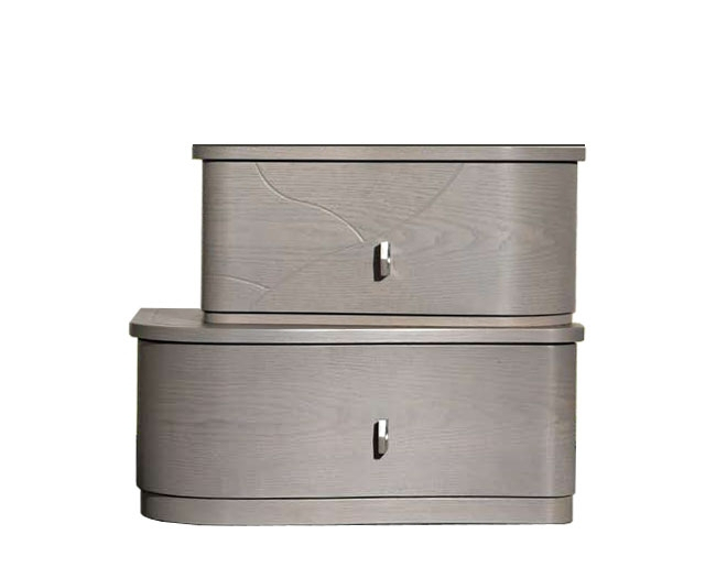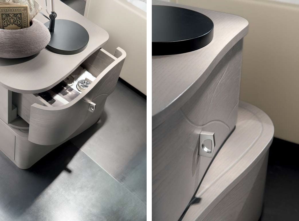 La fisionomia del mobile è segnata da dolci curvature sulla parte frontale. Il cassetto superiore ha dimensioni leggermente più contenute rispetto a quello inferiore, ma entrambi garantiscono un?ottima capienza.