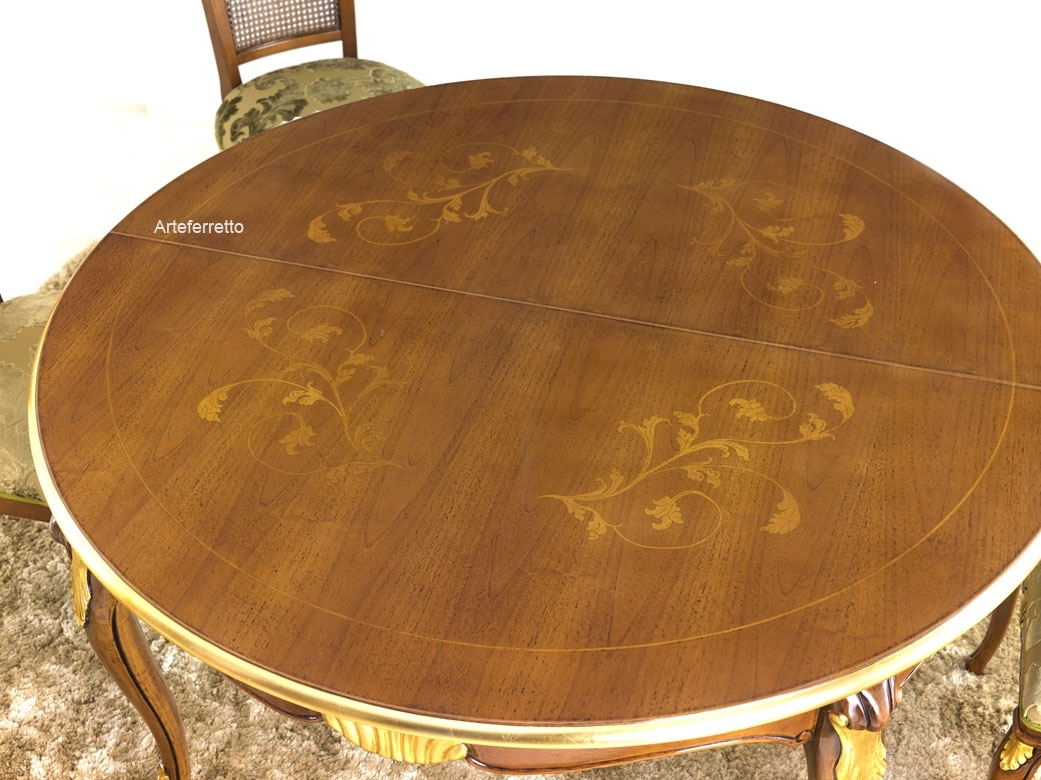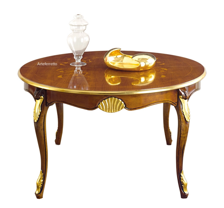 La pata central, en madera maciza, se caracteriza por hermosos y delicados trabajos que aumentan la calidad de esta mesa de comedor.