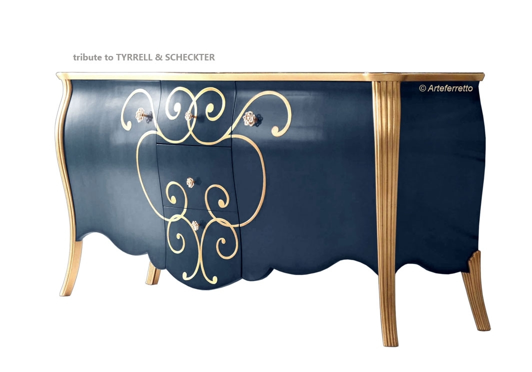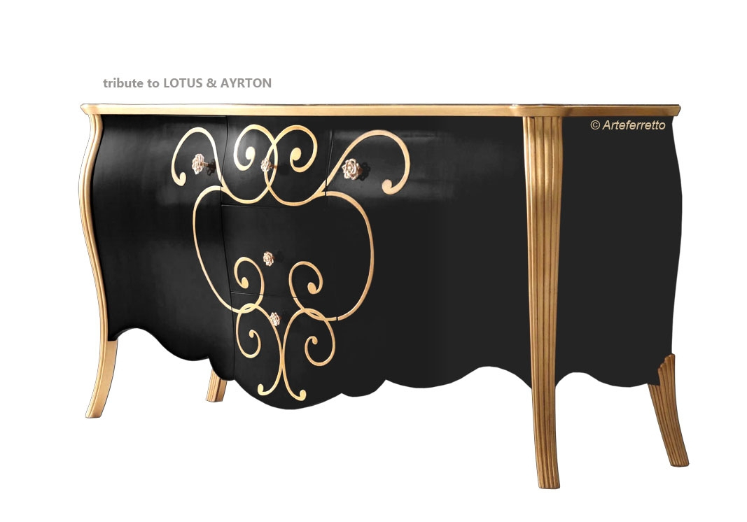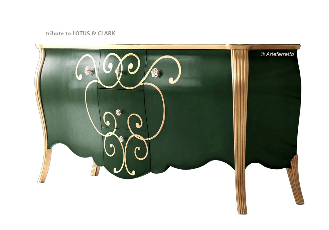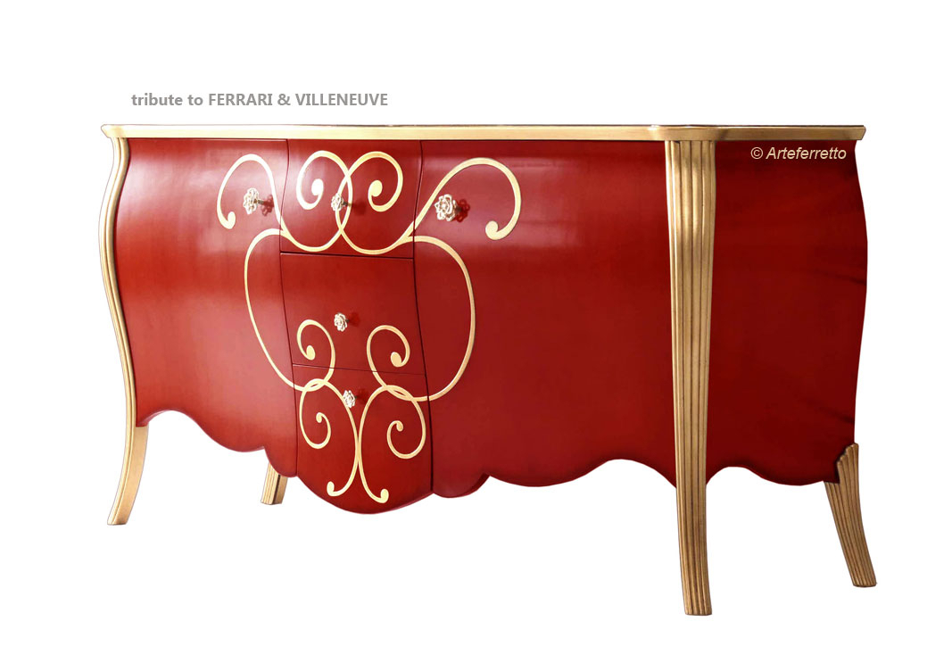 La combinación de los colores de los coches de Formula 1 con las decoraciones doradas hacen de esto mueble una obra maestra.