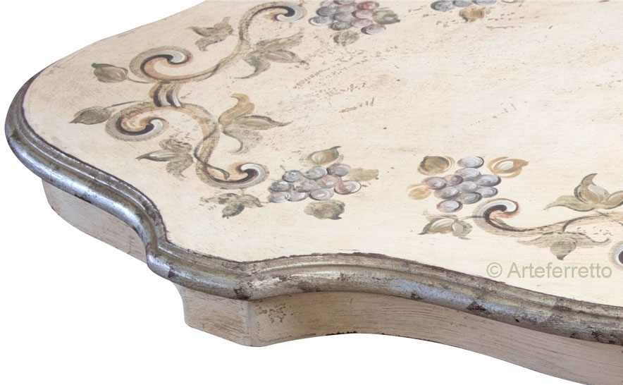 La laca particular con un efecto antiguo se aplicó manualmente reproduciendo el efecto del tiempo con extremo cuidado.
