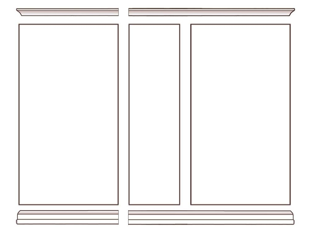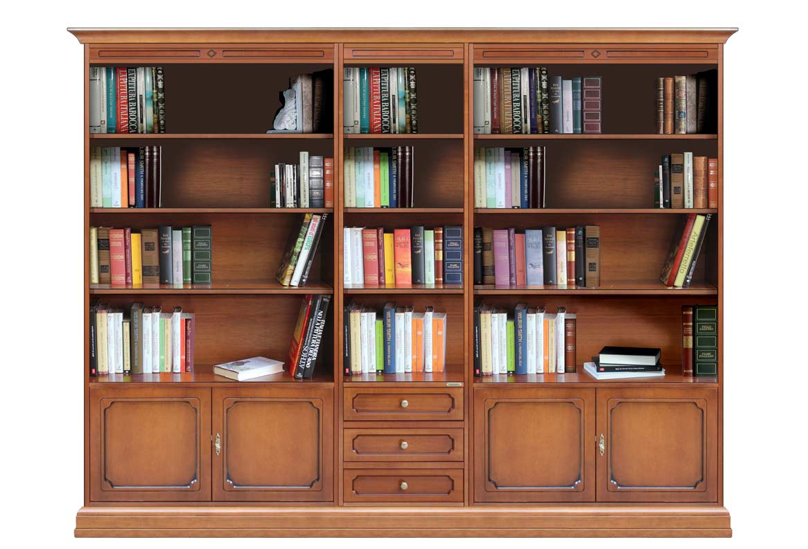 Librería de pared con vanos abiertos: los laterales son mas largos que el central.