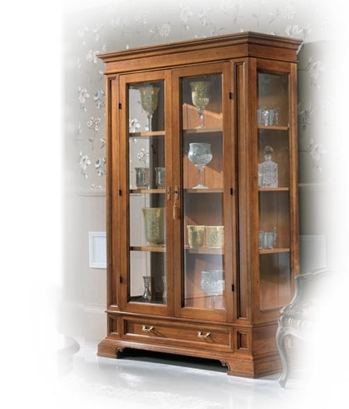 Maestosa vetrina in legno massello e listellare dalla struttura veramente notevole.