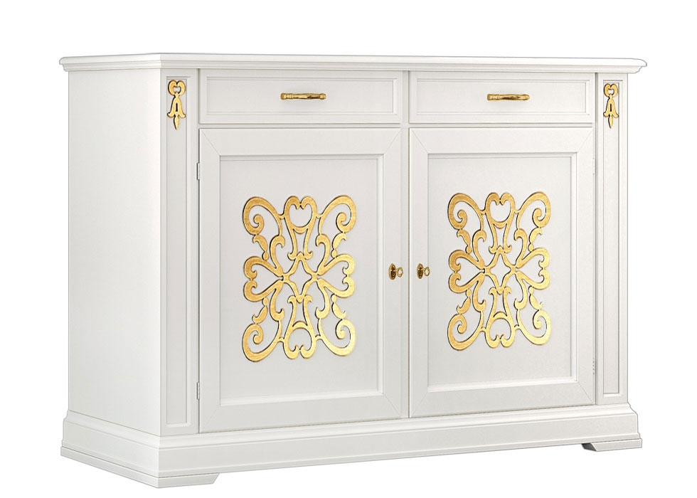 I dettagli di stile con finitura oro, si integrano alla perfezione nella linea pulita del mobile donandogli luminosità e una decisa connotazione di piacevole eleganza.