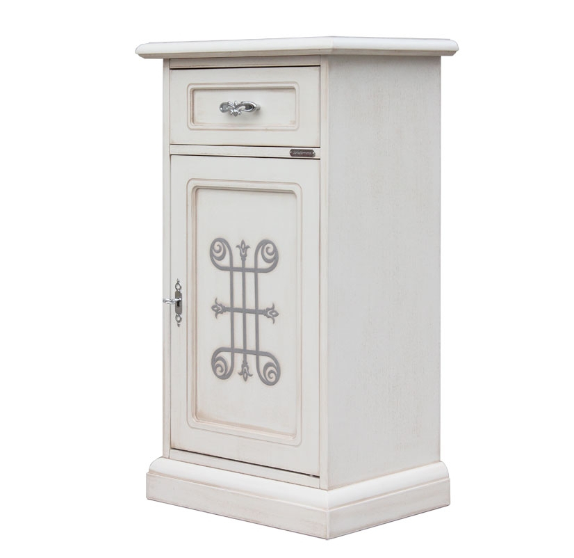 L'elegante antina racchiude, grazie ad una robusta serratura, un vano che, diviso a metà da un ripiano regolabile in diverse altezze, offre l'opportunità di ospitare i più svariati oggetti.