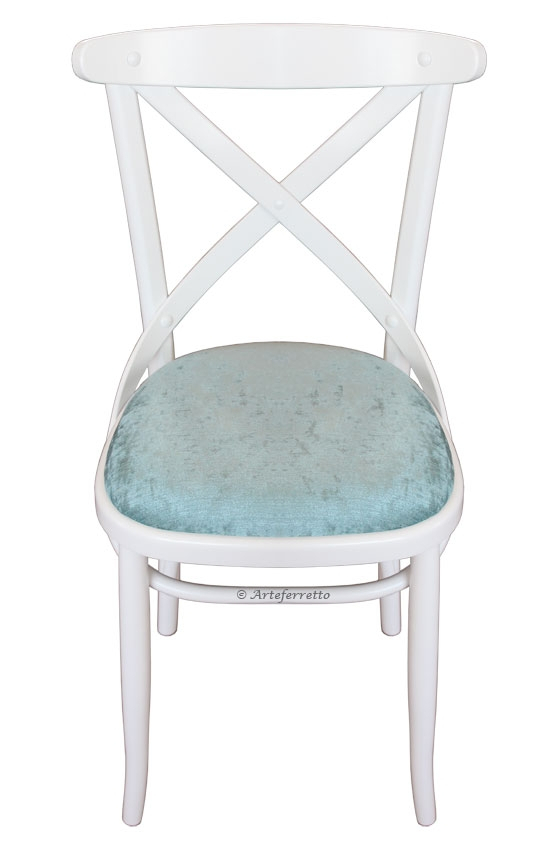 La seduta è imbottita con materiale indeformabile ricoperto di velluto azzurro "Superior".