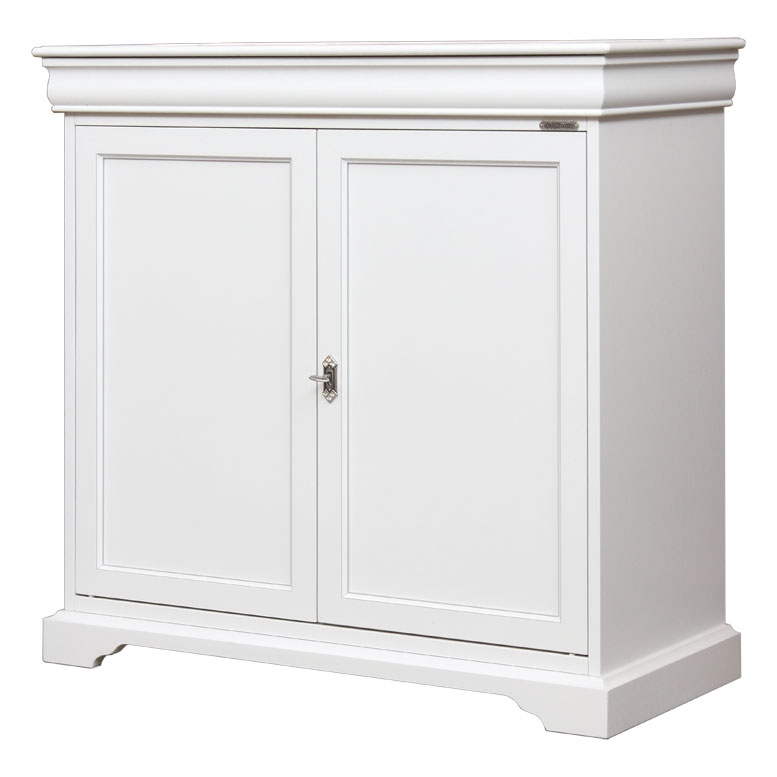 Mueble clásico por comedor y salón con 2 puertas y un cajón escondido en la estructura del tablero superior.