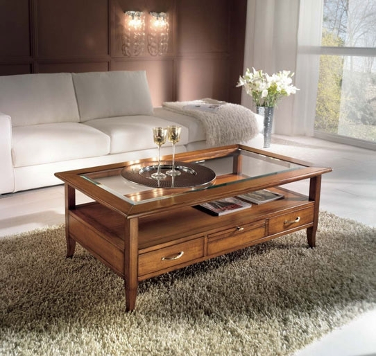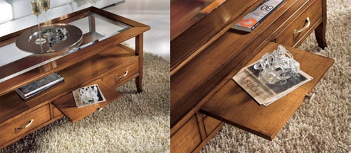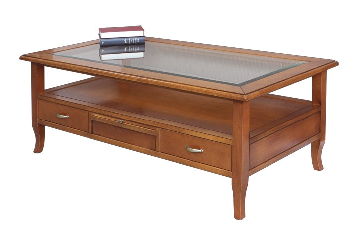 Mesa de centro con 4 cajones y 2 bandejas extraibles