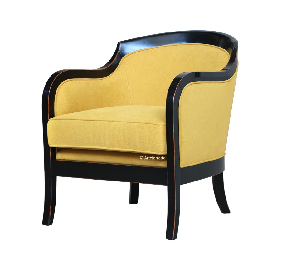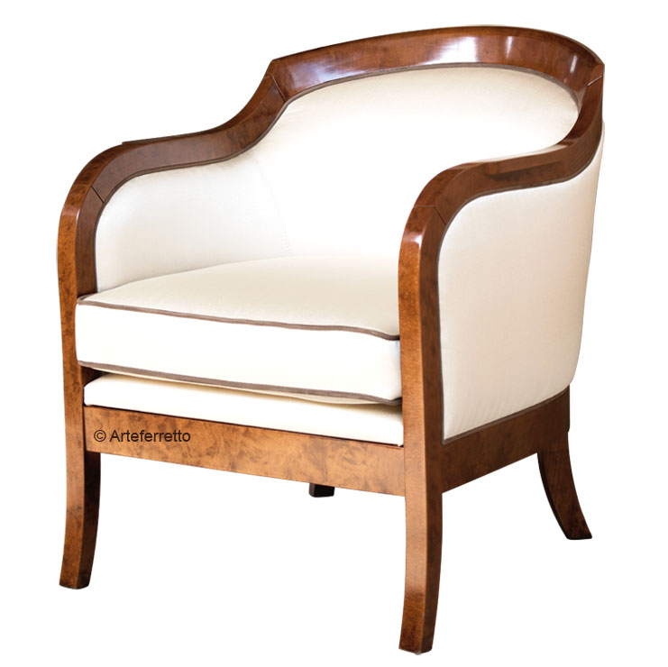 Bellissima poltrona che possiede tutto il fascino del legno modellato in linee che solo il miglior design made in Italy sa esprimere.