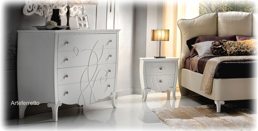 La facciata dei cassetti è percorsa da un intrigante disegno in rilievo che dona grande eleganza all’insieme.