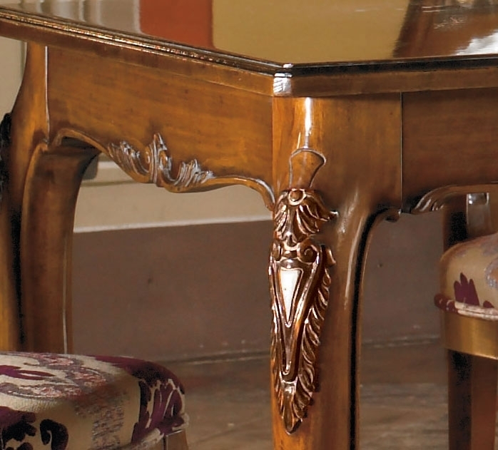 Tavolo intagliato manualmente su legno di prima qualità e dalle raffinate lavorazioni.