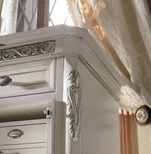 Laccato anticato, inserti in foglia argento, finitura antingiallente.