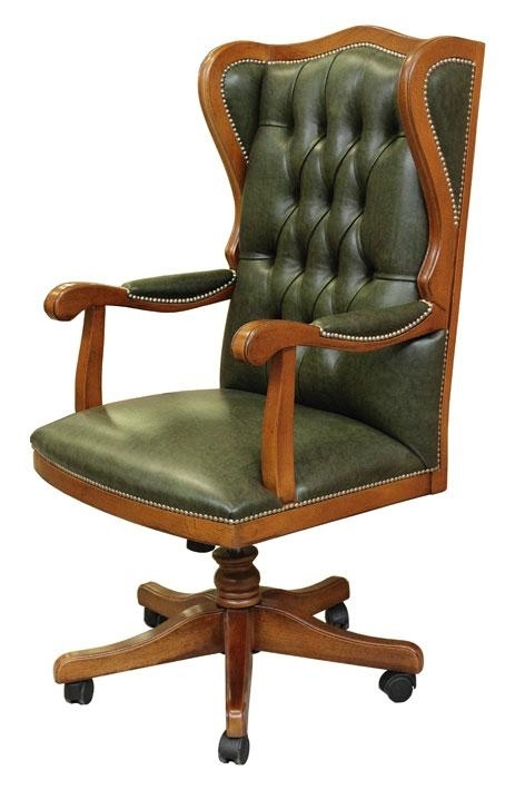 La sólida estructura es de madera de haya maciza. El sillón giratorio de cuero es muy práctico con ruedas y altura del asiento ajustable.