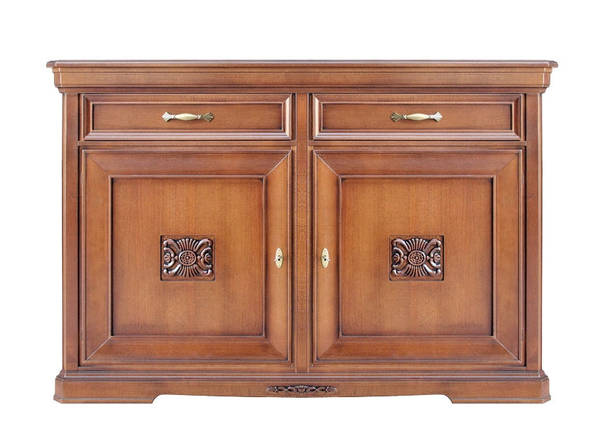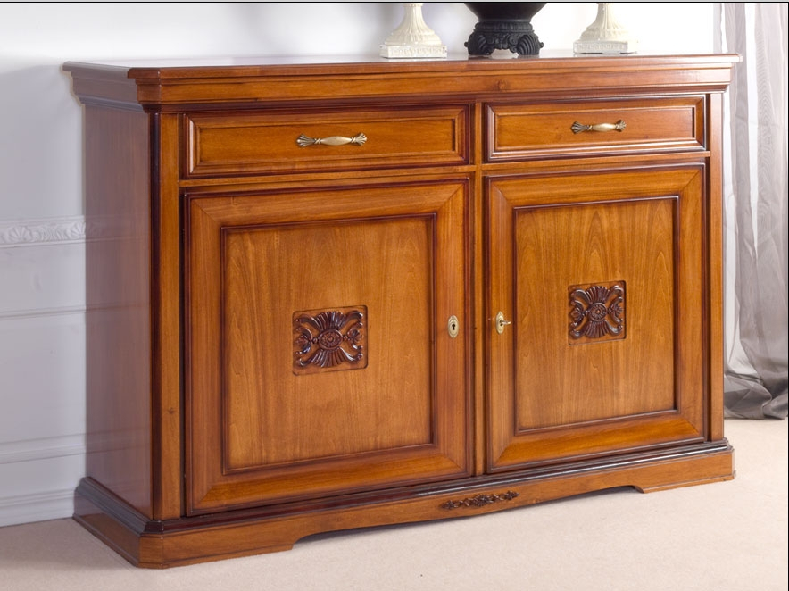 Hermoso aparador con tallados y tradicional estructura con 2 puertas y 2 cajones.