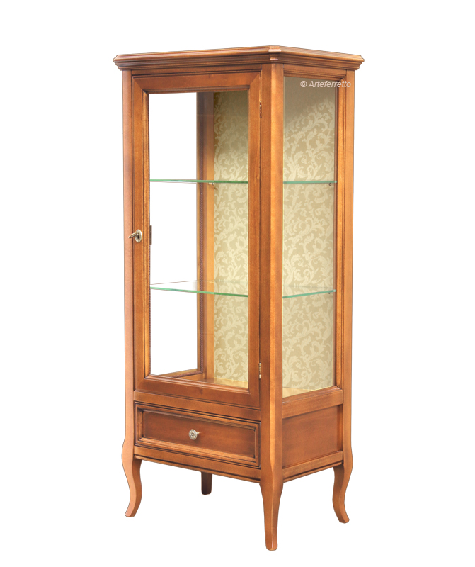Una vetrinetta che, grazie alle sue dimensioni contenute, si presta benissimo alla collocazione anche in spazi ristretti, donando, tuttavia, grande rilievo e stile all'ambiente.