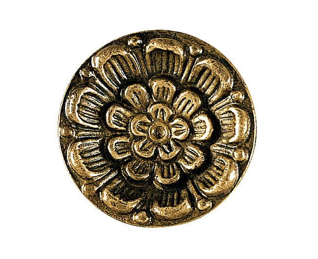 Pomello con petali finemente lavorato di ottima qualità. Presenta sulla facciata una particolare raffigurazione di petali di fiori disposti in maniera concentrica. La finitura contribuisce a rendere più evidente l'effetto profondità, mettendo in risalto i minuziosi particolari.