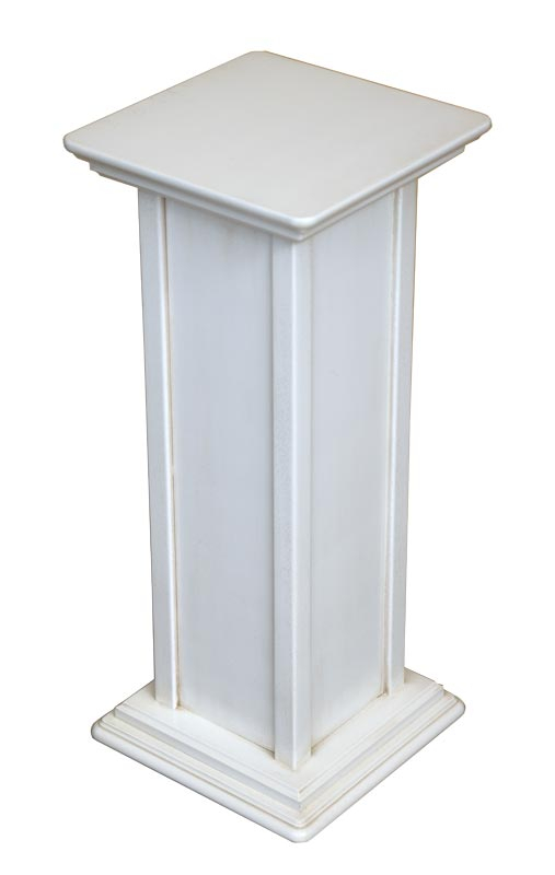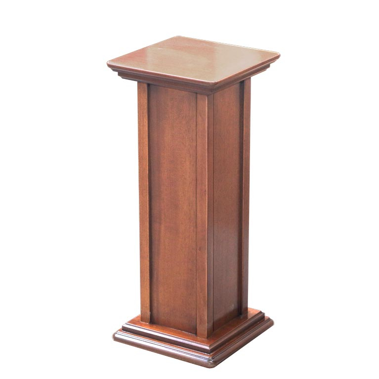 Un pedestal de madera útila para la macetas de flores y plantas.