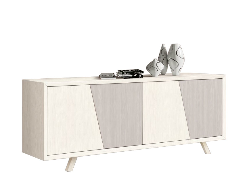 Elegante aparador en madera de fresno con 4 puertas oblicuas con un práctico sistema de apertura Push Pull.