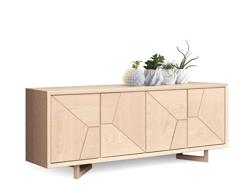 Aparador estilo contemporáneo con 4 puertas con dibujos geométricos.