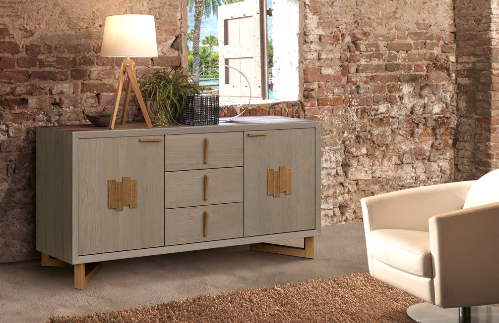 Aparador de estilo contemporáneo con 3 cajones y 2 puertas