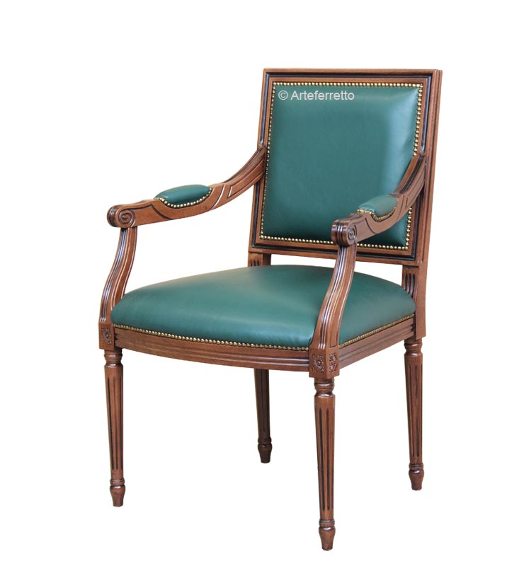 Perfecto tanto para el comedor como para un despacho de estilo clásico, este sillón garantiza gran comodidad de asiento. Su estructura es de madera de haya maciza, hábilmente trabajada y ensamblada. El tapizado realizado por artesanos venetos garantiza la comodidad, la durabilidad y la indeformabilidad del asiento y del respaldo.