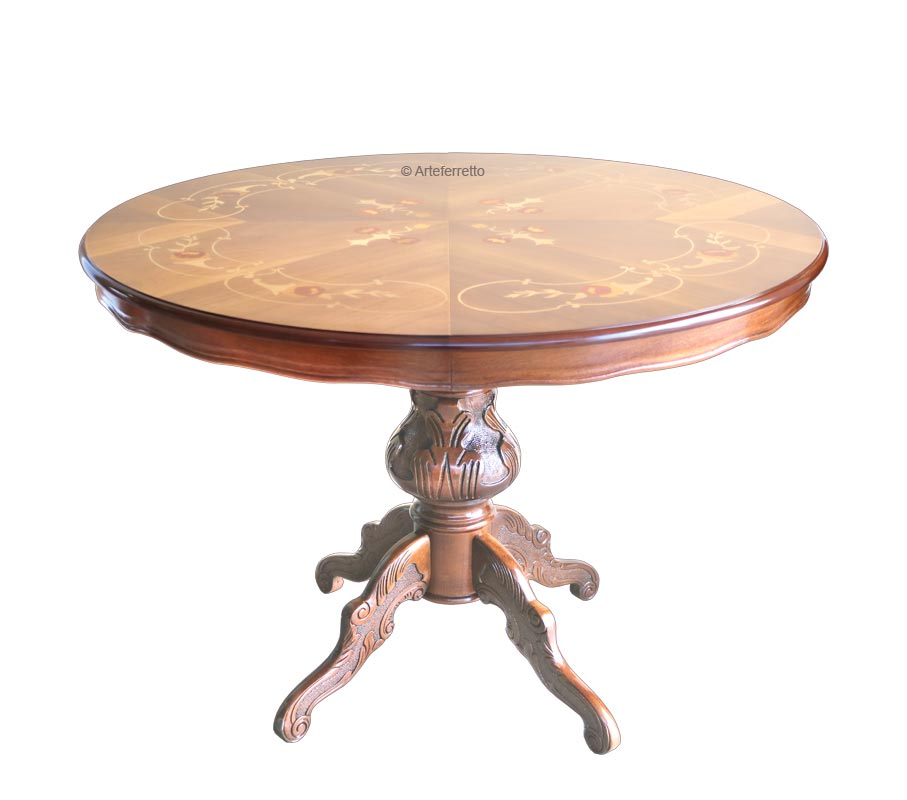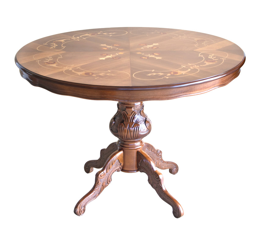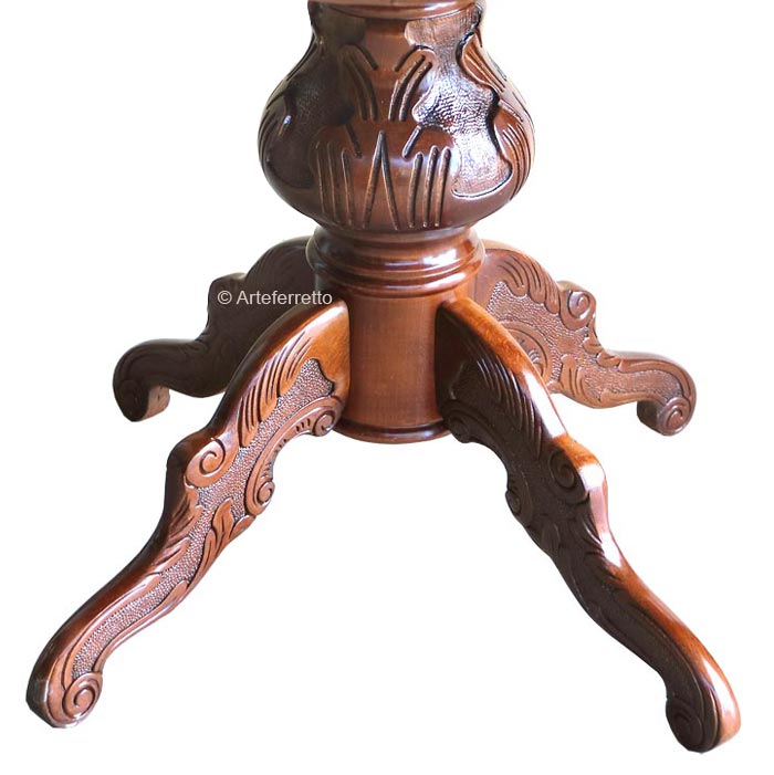 La pata central, en madera maciza, se caracteriza por hermosos y delicados trabajos que aumentan la calidad de esta mesa de comedor.