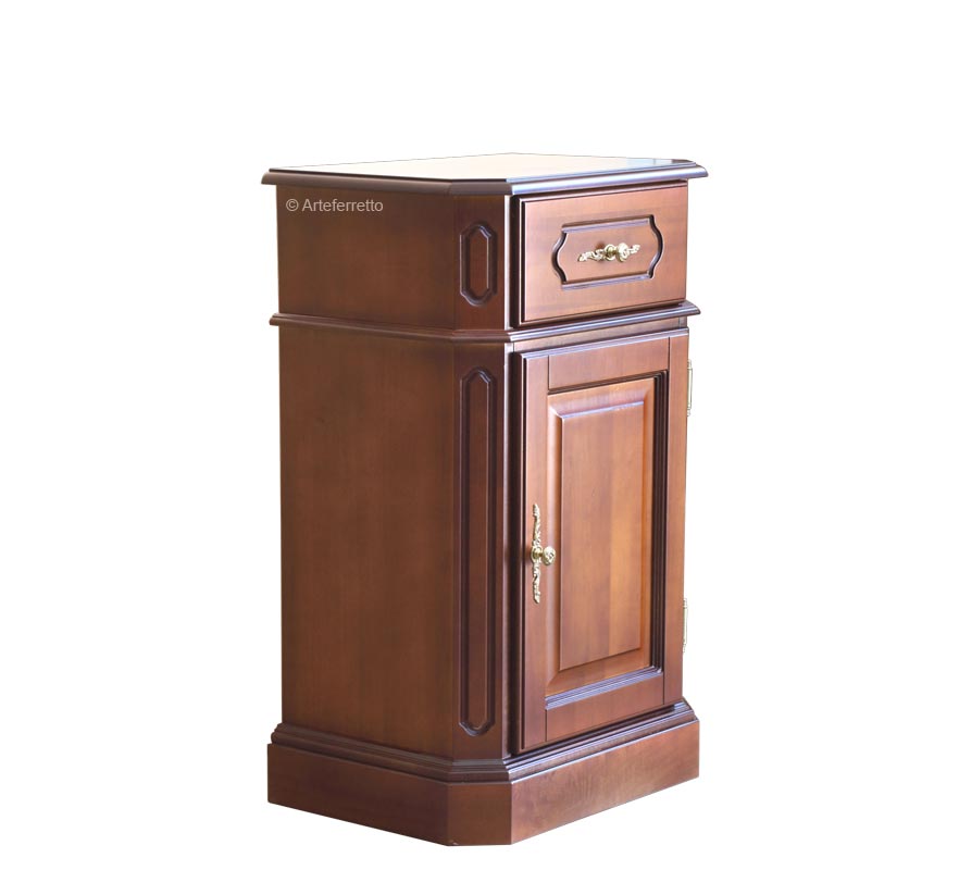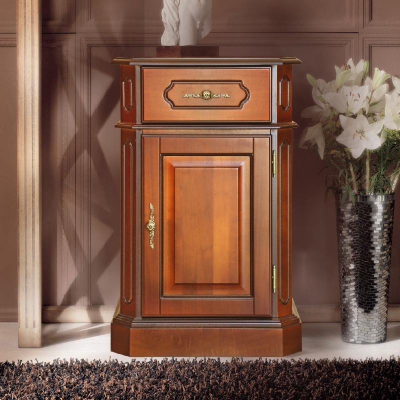 El cajón y la puerta están decorados con pomos dorados finamente acabados que añaden originalidad y luz al mueble.
