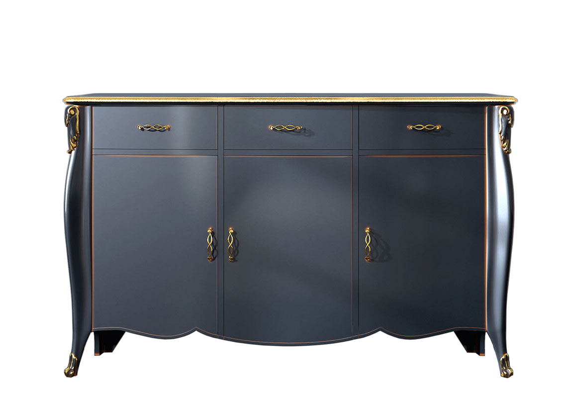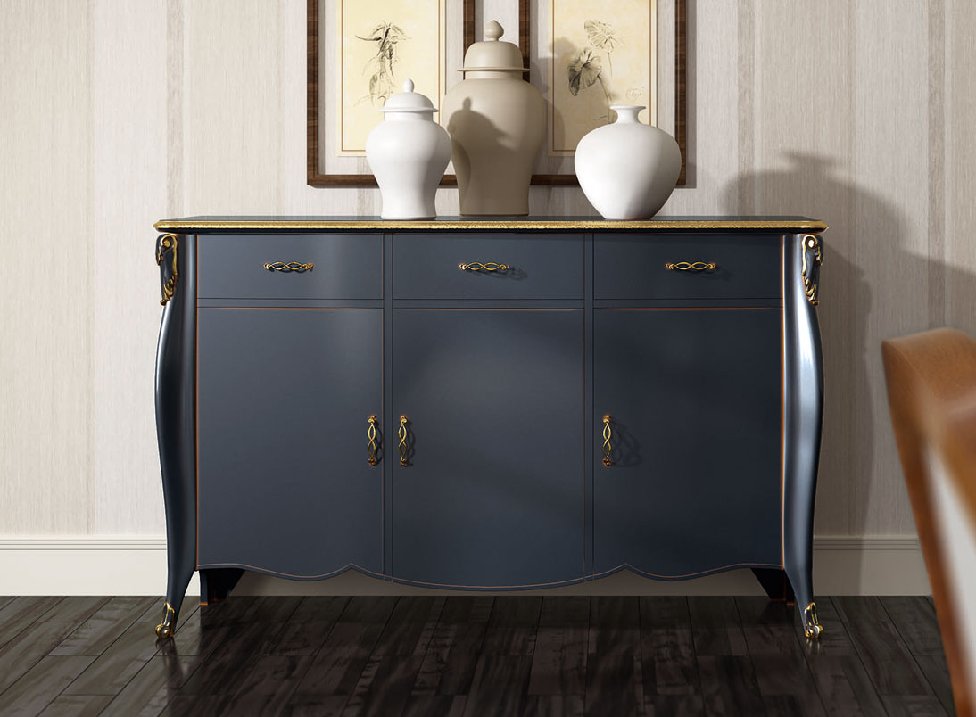 Precioso aparador azul con 3 puertas y 3 cajones, también disponible en otros colores.