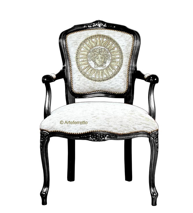 Elegante sillón lacado "Versus" con muchas características especiales: elegante estructura de madera tallada, fino lacado de la madera, maravillosa funda de la colección Versus.