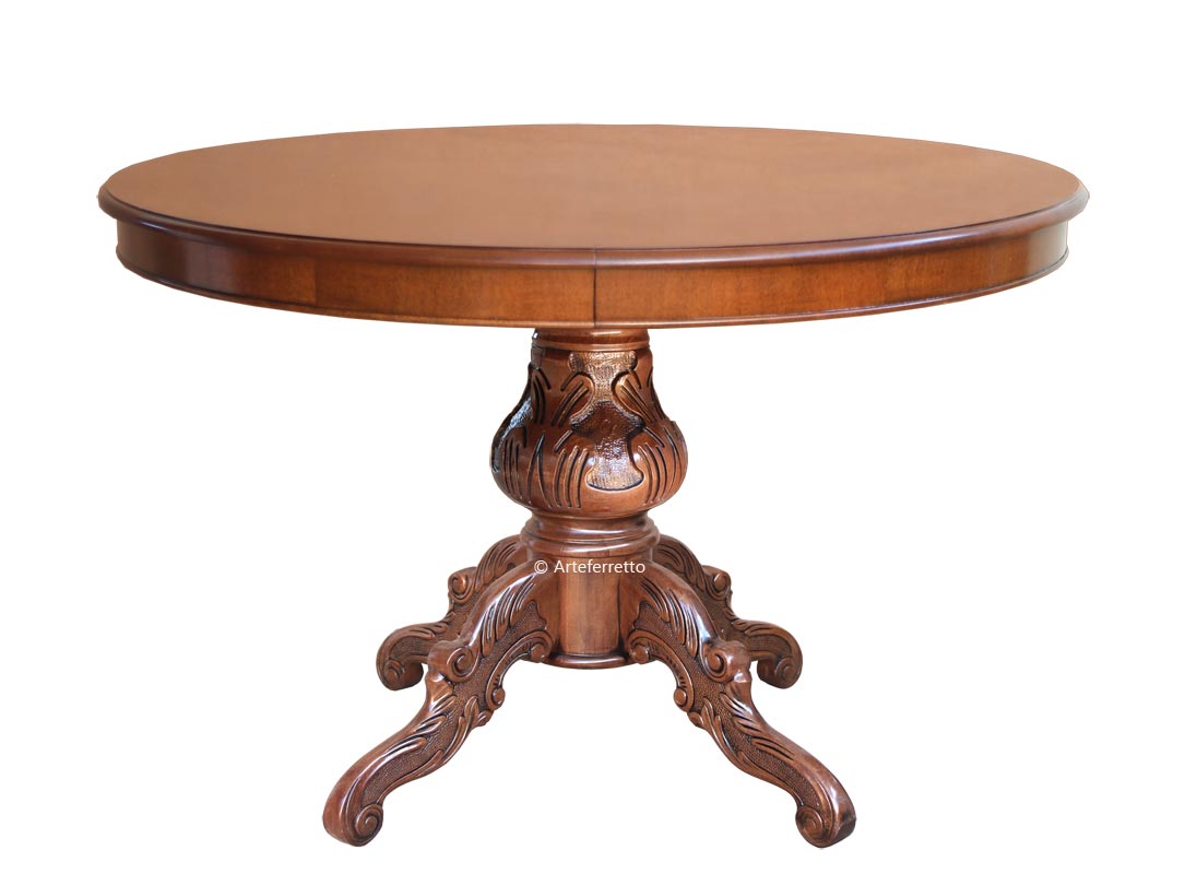 La pata central, en madera maciza, se caracteriza por hermosos y delicados trabajos que aumentan la calidad de esta mesa de comedor.