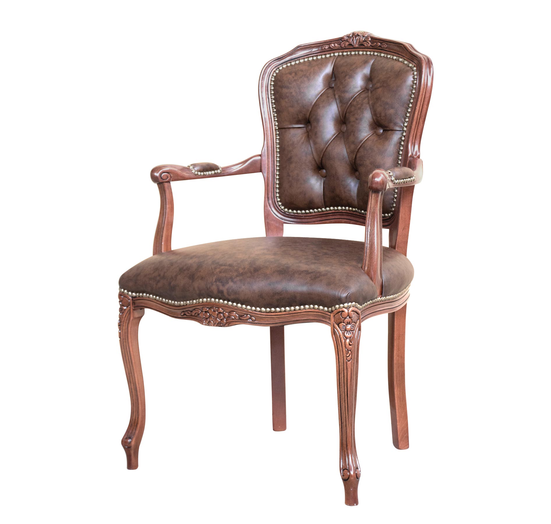 La tapicería de cuero natural, resultante del fino trabajo de capitonné del respaldo, realza este cómodo sillón que se integra armoniosamente en contextos de decoración clásica. El marco es de madera maciza de haya y el acolchado es de material resistente e indeformable.