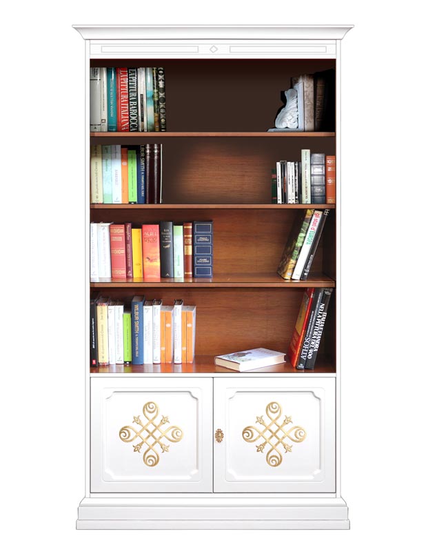 Un mueble que, además de su indiscutible utilidad, encierra elementos de gran valor, todo al mismo tiempo. El lacado perfecto deja espacio, en el interior, a la naturalidad de la pintura que realza la calidez de los tonos de madera, ¡de madera auténtica! Dos puertas refinadas y elegantes llaman la atención gracias a un motivo estilizado obtenido por grabado sobre una fina capa de madera de tilo, realzado por el acabado en pan de oro. La presencia de la cerradura en las puertas está resaltada por una cerradura con llave acabada en baño de oro para una inalterabilidad garantizada para siempre.