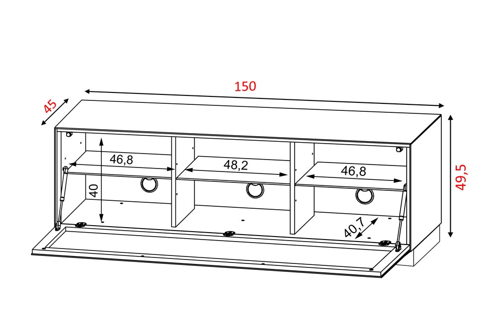 El mueble está equipado con 4 puertas de apertura a presión. Las puertas sin tirador se abren y cierran fácilmente con herrajes push-to-open.