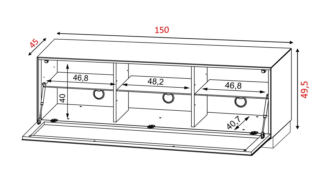 El mueble está equipado con 4 puertas de apertura a presión. Las puertas sin tirador se abren y cierran fácilmente con herrajes push-to-open.