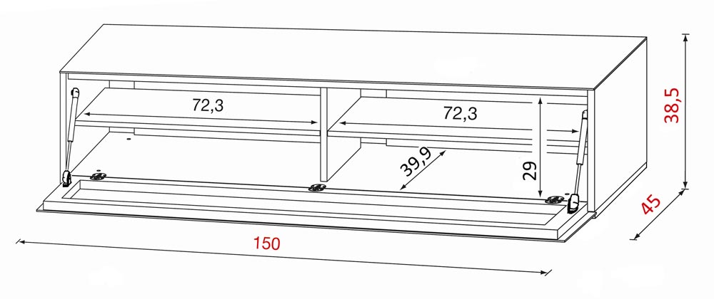 El mueble está equipado con 4 puertas de apertura a presión. Las puertas sin tirador se abren y cierran fácilmente con herrajes push-to-open.