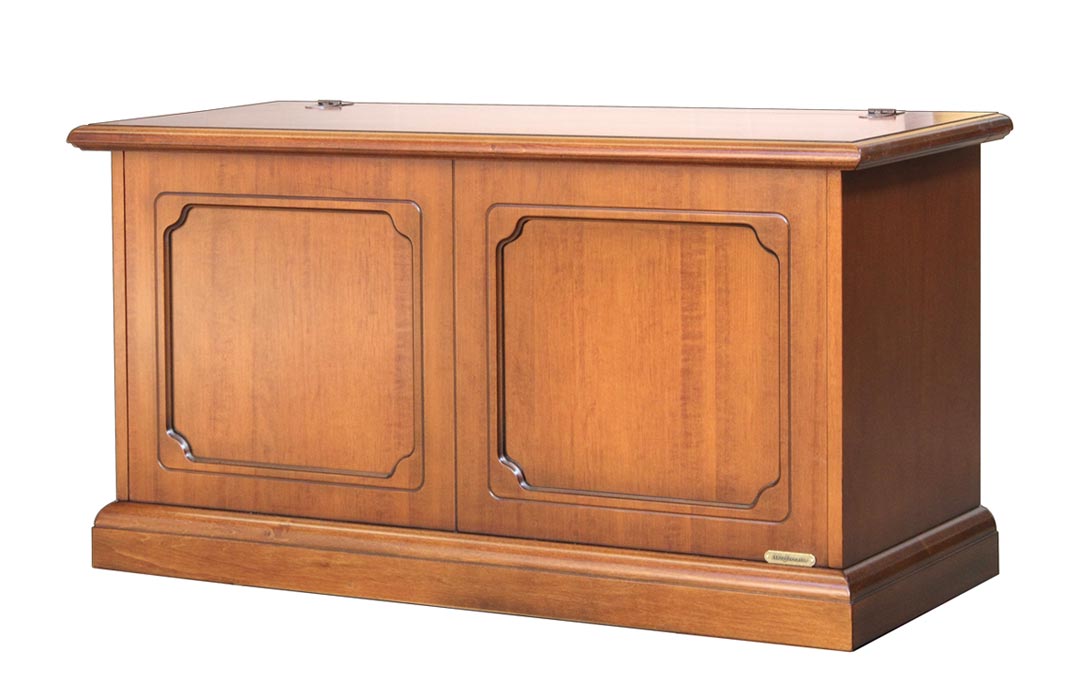 Un mueble de estilo sencillo y elegante. A pesar de sus dimensiones compactas, este baúl garantiza una gran practicidad gracias a su cómoda apertura abatible, que permite colocarlo incluso en los espacios más reducidos (por ejemplo, debajo de una ventana, en un recibidor, en habitaciones de niños, etc.).