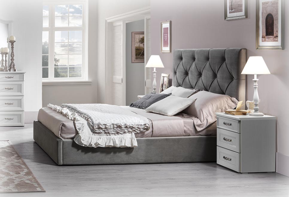 Para combinar confort y belleza, un suave tapizado de piel sintética, fácilmente lavable y muy resistente, enriquece el cabecero y hace de la cama una combinación perfecta de clásico y moderno, practicidad y elegancia, economía y calidad.