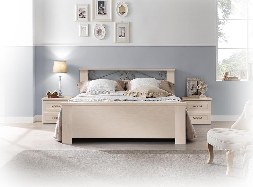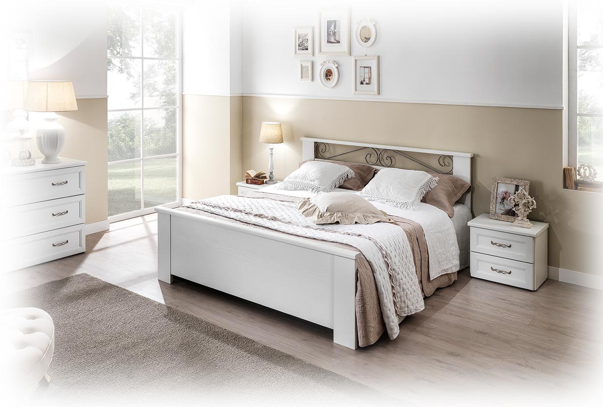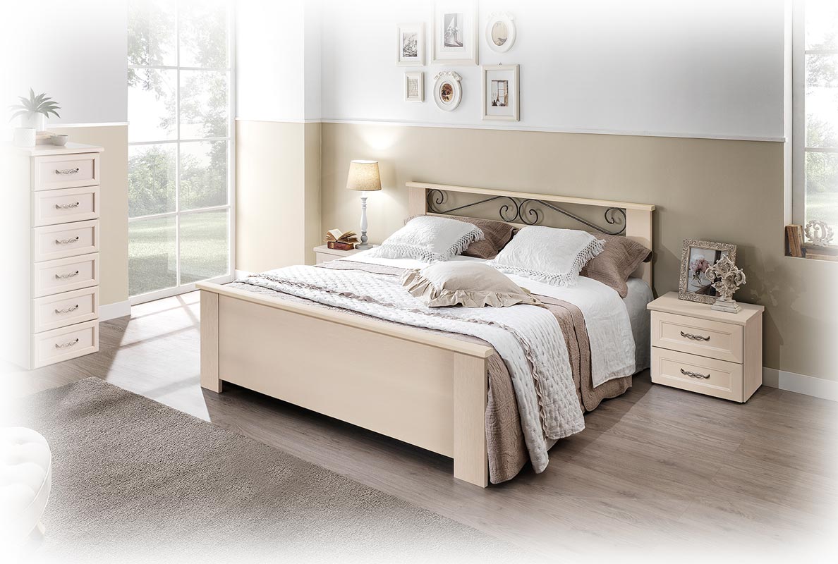 El friso de metal pintado del cabecero añade un toque de clase y elegancia.